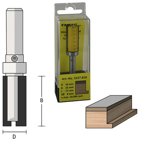 - Mèche à rainer : Fraise à rainurer droite D. 16 mm Ht. 25,4 mm Lt. 63 mm + Roulement à billes