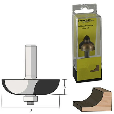 - Mèche de défonceuse : Fraise à rayon convexe D. 34,9 mm Ht. 16 mm R 12,7 mm Lt. 54 mm Queue 8 mm + Roulement à billes