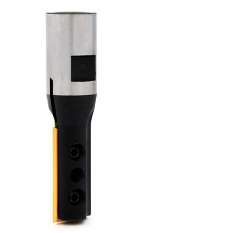 Fraise à plaquette réversible 1 coupe, angle de coupe optimal 15° grâce à la gorge sur la plaquette. Mèche de défonceuse FOZ à plaquette Z 1 x Q. M10 x D. 18 x Lu. 30 x Lt. 65 mm – MFLS – FOZM101865. Plaquette de rechange : Plaquettes amovibles carbure – FOZ 1 coupe.