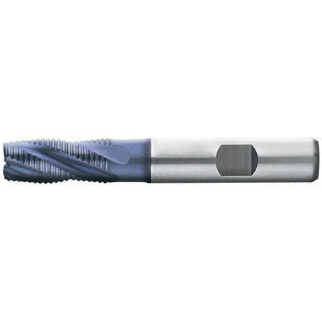 Fraise d’ébauche courte, type HR, 3 à 6 dents, en acier à coupe rapide à 10% de cobalt, surface recouverte de TiAIN Ø d1 = k12 : 20,0 mm, Longueur totale l1 104 mm, Longueur des lames l2 38 mm, Diamètre de la queue d2 = h6 : 20 mm, Nombre de dents : 4 – En acier à coupe rapide à 10% de cobalt – Type HR – DIN 844-K – Pour le fraisage de pourtour et de perçage – Usinage à sec possible