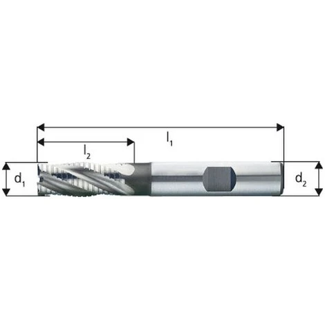Fraise de semi-finition courte, type NF, en acier à coupe rapide à 5% de cobalt, sans revêtement Ø d1 = k12 : 12,0 mm, Longueur totale l1 83 mm, Longueur des lames l2 26 mm, Diamètre de la queue d2 = h6 : 12 mm, Nombre de dents : 4 – HSS à 5% de cobalt – Type NF – DIN 844 – Pour le fraisage de pourtour et de perçage