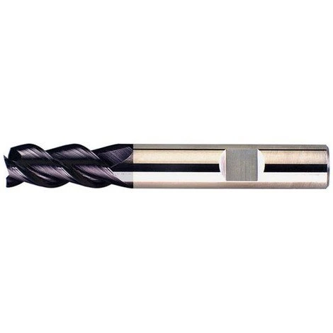 Fraise longue, 3 dents, 45°, en carbure monobloc, recouverte de TiAIN Ø d1 = h10 : 3,0 mm, Longueur totale l1 57 mm, Longueur de coupe l2 7 mm, Diamètre de la queue d2 = h6 : 6 mm – En carbure monobloc K10/K20 – Type N – DIN 6527 – Pour le fraisage de fentes, d’arêtes, le rognage, le fraisage de finition, l’usinage universel – Usinage à sec possible