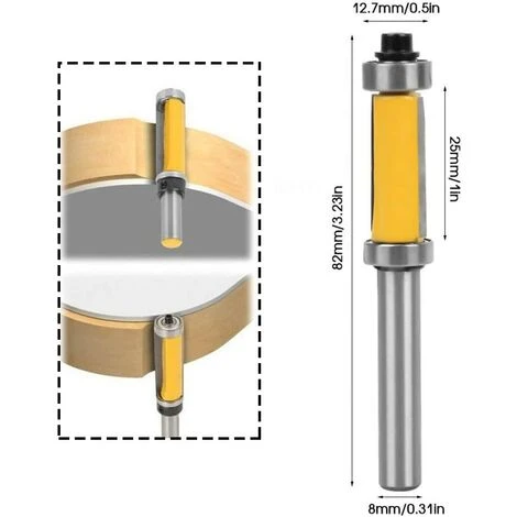 1 x 8mm Queue Routeur de Garniture Affleurante