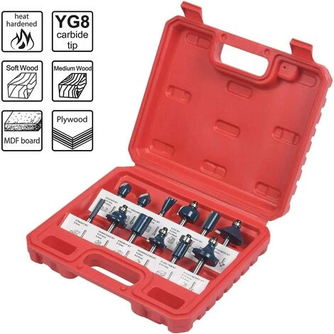 【12 DIFFéRENTS BITS DE ROUTEUR】: Cove Box Bit-6.35MM; | Lagerdeckel Bit-6.35MM | Schwalbenschwanzbohrer-12.7MM | Rundung über Bit-6.35MM | Bit changeur 45 ° Lager-32MM | Mors de Fl?te à Lager-12.7MM | Straight-16MM | Straight-6MM | Rundung über Bit-9.5MM | 90 ° « V » -Nutbohrer-12.7MM | Bit d’Ogee Romain-4MM | Droit-12MM.