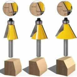 8mm shank; 15° , 22.5°, 30° chamfer and bevel cuts Router Bits for edging and create miter joints of various angles.