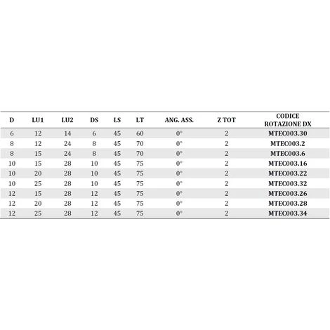 Fraise en diamant avec taillants droits Z2, corps de la fraise en carbure monobloc.