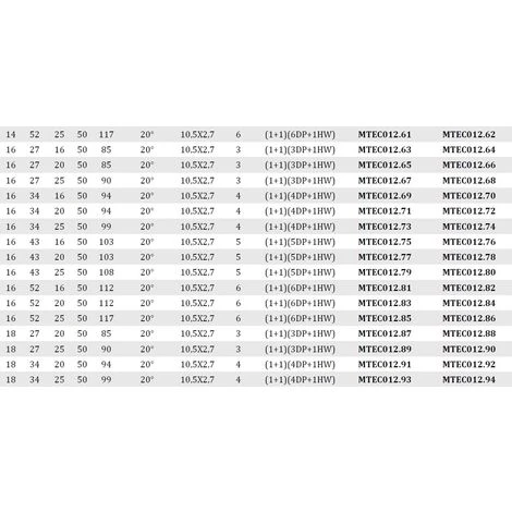 Fraise en diamant Z1+1, 3 divisions en hélice, première plaquette positive, plaquettes restantes négatives.