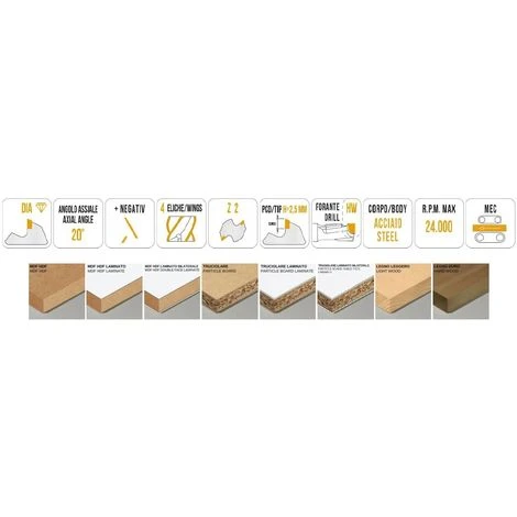 Parfaite pour l’usinage des panneaux agglomérés revêtus, des panneaux laminés, enrobés, en MDF revêtus, des bois durs sans nœuds, des matériaux polymères.