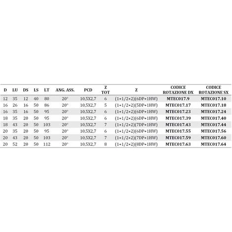 Fraise en diamant Z2+2 au niveau de la partie de coupe supérieure et inférieure, Z1+1 au niveau de la partie centrale, 4 divisions en hélice, première plaquette positive avec plaquettes restantes négatives.