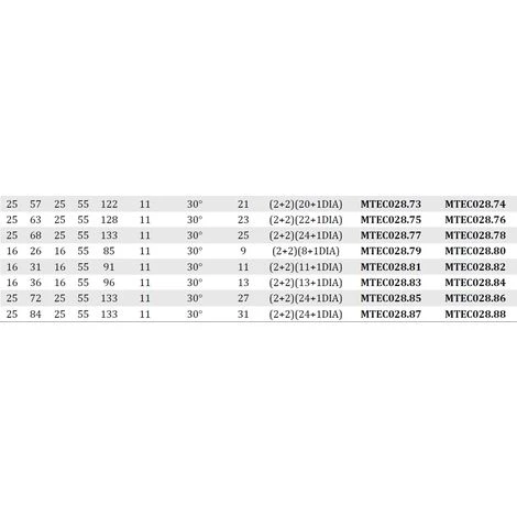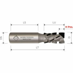 Fraise en diamant Z2+2, 4 divisions en hélice, première plaquette positive 11 mm, plaquettes restantes négatives.