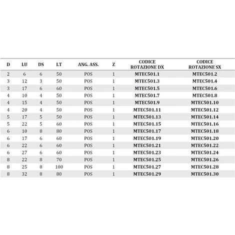 Fraise hélicoïdale en carbure avec taillant positif Z1.
