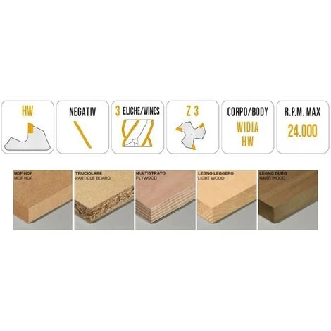 Fraise hélicoïdale en widia avec taillant négatif Z3.