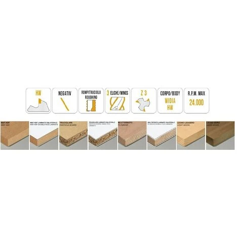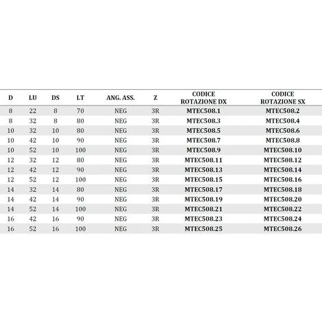 Fraise hélicoïdale en widia avec taillant négatif Z3 et brise–copeau.