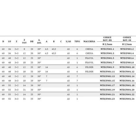 Fraises bordeuses pour rectification à hélice en diamant avec plaquette H2,5 mm et angle axial de coupe 30°.