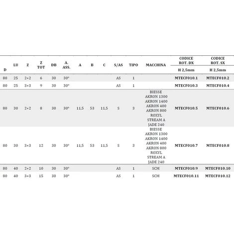 MACHINES: BIESSE AKRON 1300 AKRON 1400 AKRON 400 AKRON 800 ROXYL STREAM A JADE 240