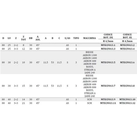 Fraises bordeuses pour rectification à hélice en diamant avec plaquette H4,5 mm et angle axial de coupe 45°.