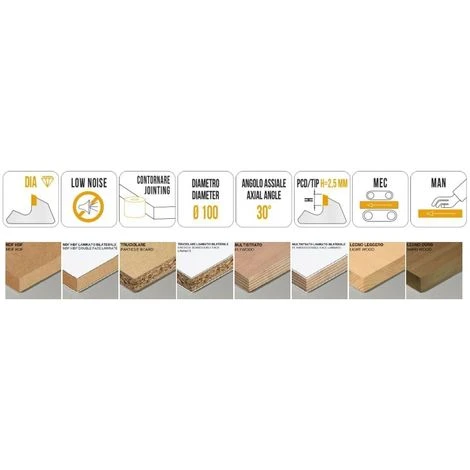 Fraises bordeuses pour rectification à hélice en diamant avec plaquette H2,5 mm, angle axial de coupe 30° et rainures antibruit.