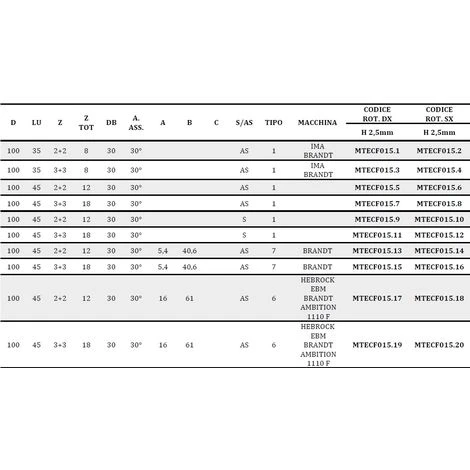 Fraises bordeuses pour rectification à hélice en diamant avec plaquette H2,5 mm et angle axial de coupe 30°.