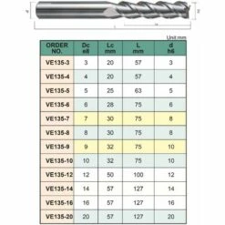 JEU DE 18 FRAISES À 4 LÈVRES EN CARBURE MONOBLOC Vertex VE124-A