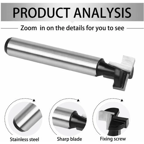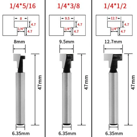 [Matériau] Ce produit utilise un alliage dur YG6, avec un tranchant tranchant, une dureté élevée, un positionnement précis, une coupe douce et une résistance aux chocs. [Application] Ces couteaux 1/4 manche conviennent aux planches en bois massif, MDF, panneaux de particules, profilés design, pour une coupe lisse et fine et la production de meubles à la mode. Ils conviennent également pour fraiser des rainures dans des cadres, des panneaux, des horloges, des cintres et d’autres outils muraux pour créer des suspensions en trou de serrure ou créer des rainures pour les câbles. [Caractéristiques] Lames en alliage dur, haute qualité de soudure, qualité stable, haute efficacité, pas besoin de s’inquiéter de la rupture et de l’inclinaison lors du travail. La lame est tranchante et durable, et elle est conçue avec une courbe en arc, qui est facile à démonter et a une efficacité de perforation plus élevée. [Inclure la liste] Contenu de la livraison : 1 x pour vis hexagonales 1/2″ ; 1 x pour vis hexagonales 3/8″ ; 1 fraise à rainure en T pour vis hexagonales 5/16″.Arête de coupe en carbure cémenté (carbure cémenté YG6X).